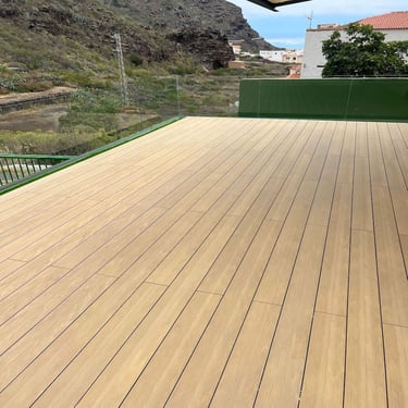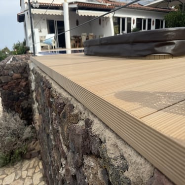 En Tenerife, instalamos tarima flotante exterior con precisión técnica, tanto en madera natural como en tarima composite de alta durabilidad.